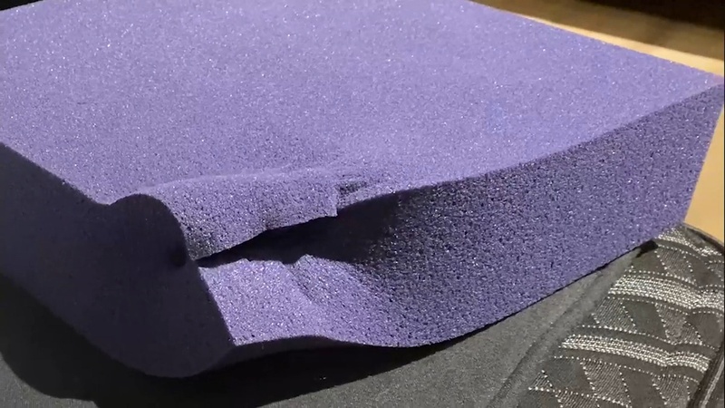 All of Beautyrest’s new Black Hybrids use some amount of memory foam. In the Series 1 models, this is a collection of Beautyrest’s classic memory foams, including Gel Memory Foam, Dynamic Response Memory Foam, and GelFeel Firm HD Memory Foam. In the image below you can see Beautyrest's Gel Memory Foam on the left and their Micro Diamond Memory Foam on the right.