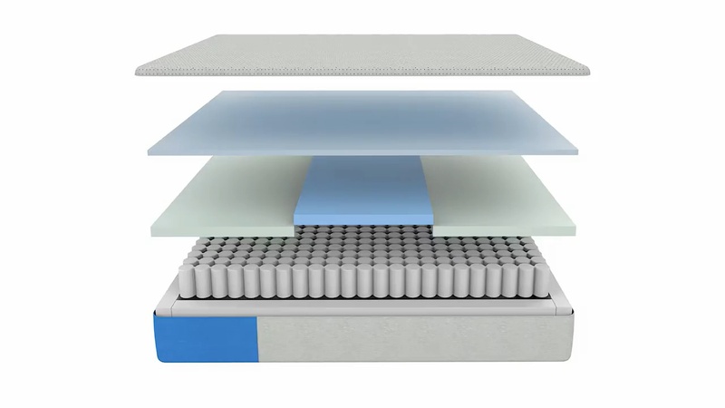 All of the new hybrid mattresses use the same underlying coil unit. This is a fairly robust 13 gauge coil unit in a 788 count density in a Queen size. If you’re unfamiliar with coil units, the 13 gauge nomenclature means that this is a relatively thick coil, and one that is likely to be very durable in the long-term. The 788 count density means that, if the coils weren't contained by a 4" foam edge and instead extended all the way to the edge of the mattress, then they'd have a 788 overall count.