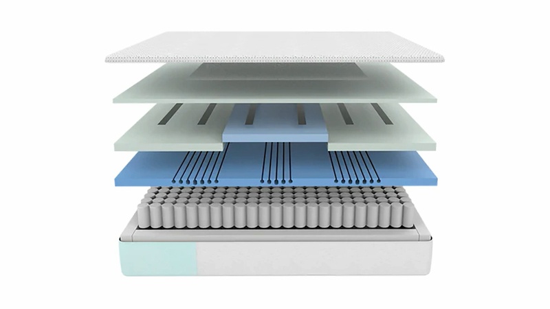 Much like the Dream Max, the Snow Max adds more comfort material and adds contour-cut zones compared to the relative base Snow Hybrid. However, the Snow Max also adds more Heat Delete Bands as well. Where there were only three bands in the Snow Hybrid, the Snow Max has a total of six Heat Delete Bands to channel heat away from a sleeper. And much like with the above hybrids, underneath these layers there's the same sturdy pocket spring unit.