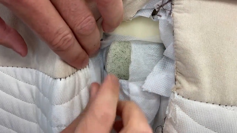The Saatva Rx uses a more traditional quilted cover made of organic cotton with a "Guardin botanical antimicrobial treatment" to inhibit the growth of mold and bacteria. This also has a tighter stitch pattern in the middle third (and the previously mentioned memory foam crown) to add some additional support to this area. We also noticed a bit of memory foam in the quilt when we cut this open which functions to give the mattress a slight sense of memory feel.